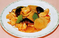 【作り方】 @.海老は殻をむき、塩・酒で下味をつけ、片栗粉をまぶし茹でる。 A.ヤーコンは皮をむき、薄切りにして5分ほど茹で、ザルにあげる。 B.ピーマンは乱切りにし、しいたけはもどして、削ぎ切りにする。 C.鍋を熱し油を入れて、ピーマン・しいたけ・ヤーコン・海老を炒める。